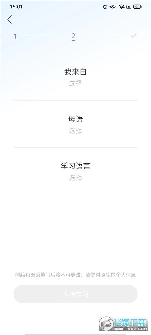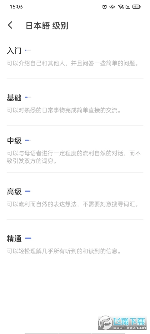 在语言学习的选项里,我们还能选择所需的入门级别,之后就能进入学习了。