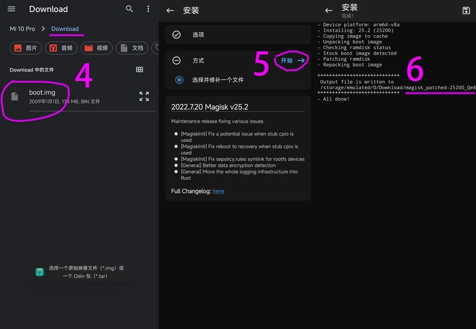 选择boot.img – 5. 开始操作 – 6. 修补完成