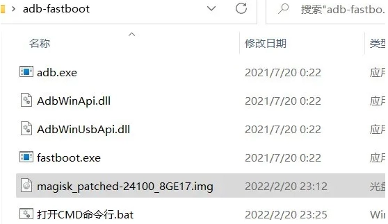 1 把从手机复制回来的magisk_patched-xxxx_xxxx.img文件,复制到adb-fastboot文件夹里面。
