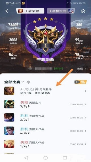 此时即可浏览该玩家的所有历史战绩记录。