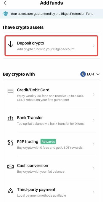 第2步:按照图示,点击用于从外部钱包充值加密资产的选项。