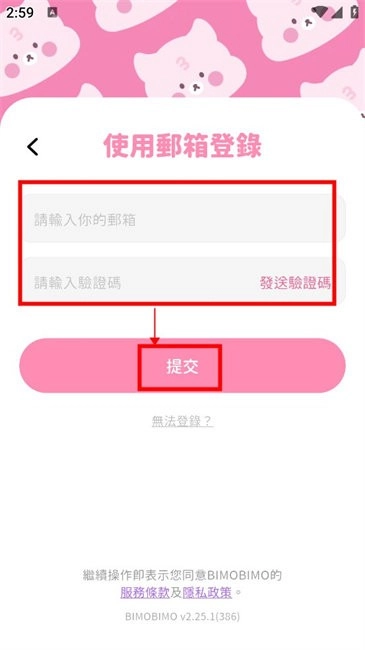 如果选择使用邮箱登录,点击进入邮箱登录界面。