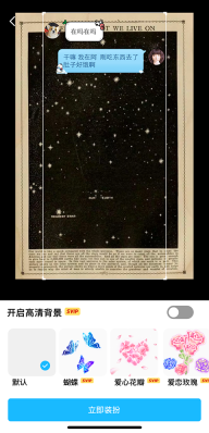5、要是没找到心仪的,也能从相册里自行上传图片来制作背景,调整妥当后,点击立即装扮即可。
