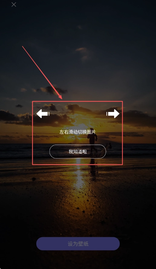 3、可以左右滑动选壁纸点击底部紫色设为壁纸按钮,点击底部紫色设为壁纸按钮确认设置操作和最终应用。