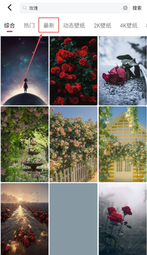 2、进入壁纸大图预览界面点击最新选项,点击最新选项选择喜欢的壁纸内容进行预览查看。