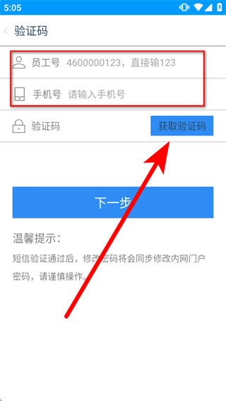 3、在验证码页面的手机号输入框中填写手机号,点击获取验证码。