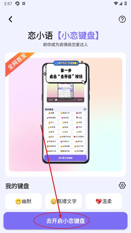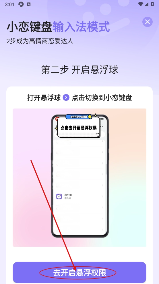 如图所示,点击“悬浮球”,就能切换到恋小语键盘使用了。