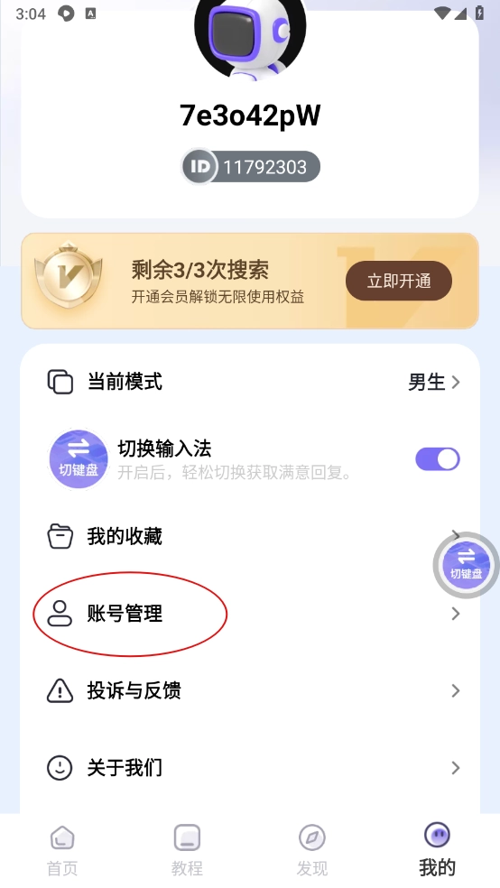 然后点击"账号管理"一键打开。