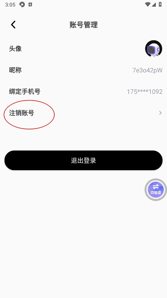 然后在账号管理里面点击"注销账号"。