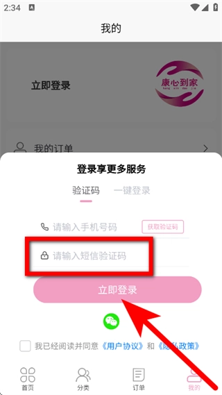 4、输入短信验证码,勾选同意后,点击立即登录,完成登录。