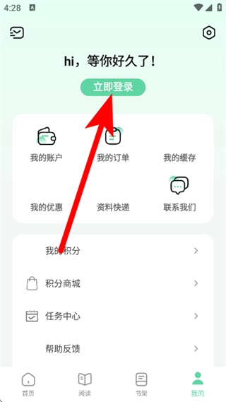 1、在书加加的首页,点击页面底部的“我的”选项,即可进入个人中心页面。