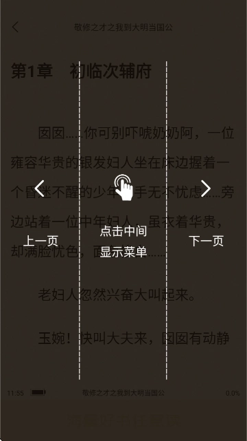 5、点击中间即可显示菜单,轻松进入阅读模式。