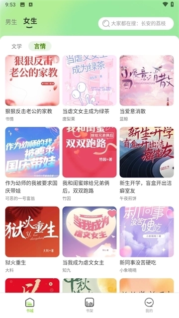2、接着点击下方的“书城”,我们可以看到各种不同分类的小说资源。