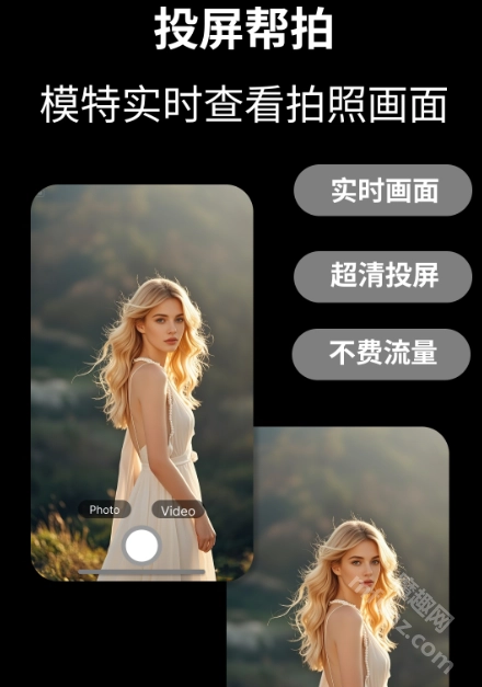 -支持两台设备借助热点直连,将摄影师的取景画面实时同步到模特的手机上