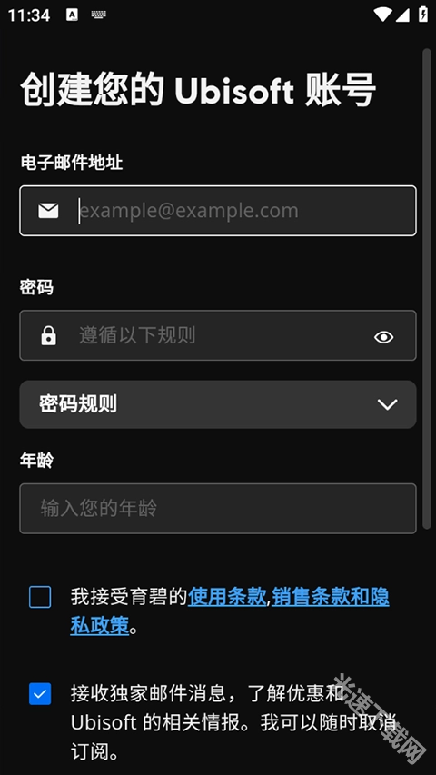 然后根据要求填写邮箱、密码、年龄后点击注册