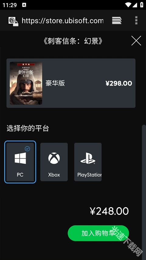 选择你的游戏平台,并点击加入购物车