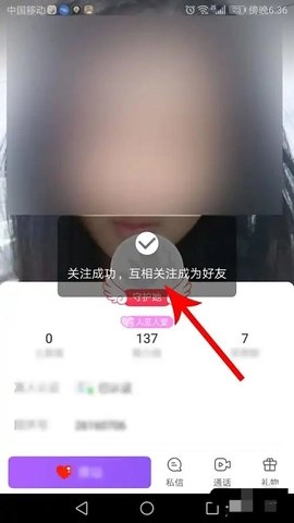 点击后系统会弹出提示窗口,显示“关注成功,互相关注即可成为好友”。