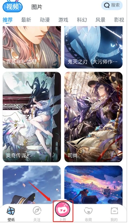 点击底部【上传】,选择视频或微动壁纸类型。
