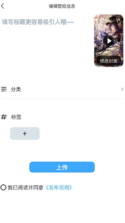 选中本地动态壁纸,填写名称与标签后点击【发布】。