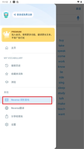 进入“词形变化”页面,可以更好的帮助你进行学习