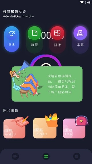 录制完成后,点击软件中间的编辑图标。