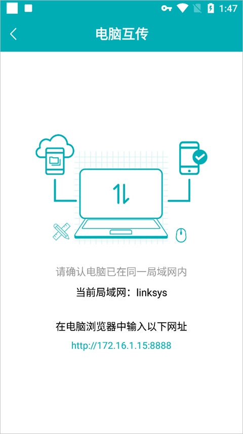随后在电脑浏览器中输入指定网址即可完成数据传输。