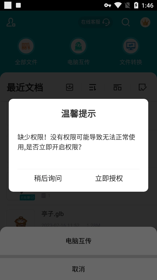 首次使用需完成授权操作,点击“立即授权”。