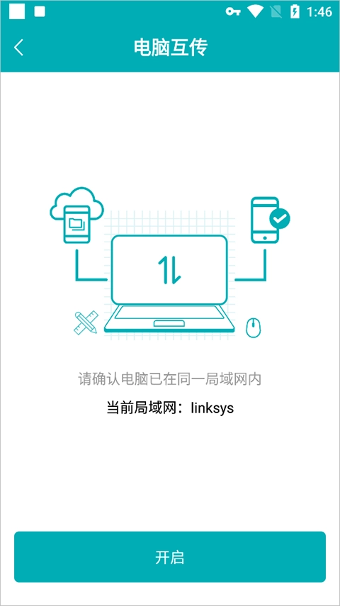 进入互传页面后点击“开启”启动连接。
