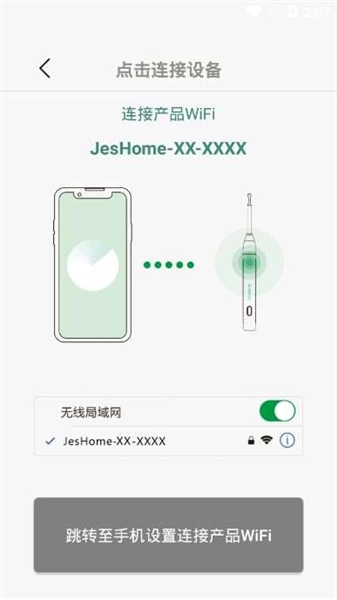 用户也可以在手机设置里找到名为“JesHome-P1-xxxx”的设备并点击连接,此时开机键的蓝灯将保持常亮,以此确认连接状态正常。
