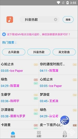 搜索速度快捷,搜索方式丰富多样。您既可以通过歌曲名称搜索,也能依据艺人名称查找。整体操作简便易行,十分贴合用户使用习惯。