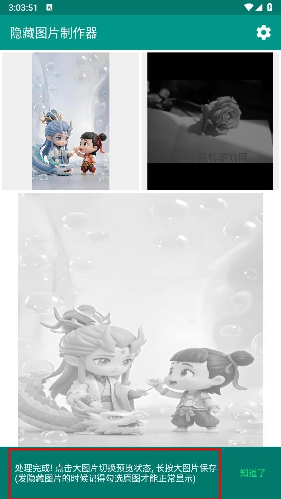 点击生成按钮后,软件会自动融合两张图片,从而生成具有隐藏效果的图片。