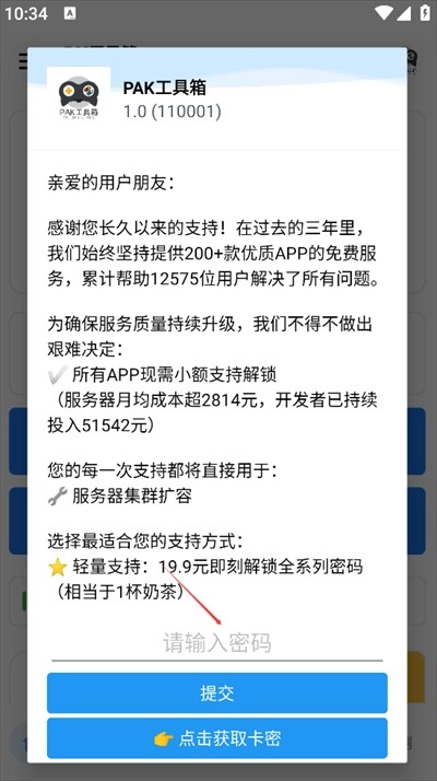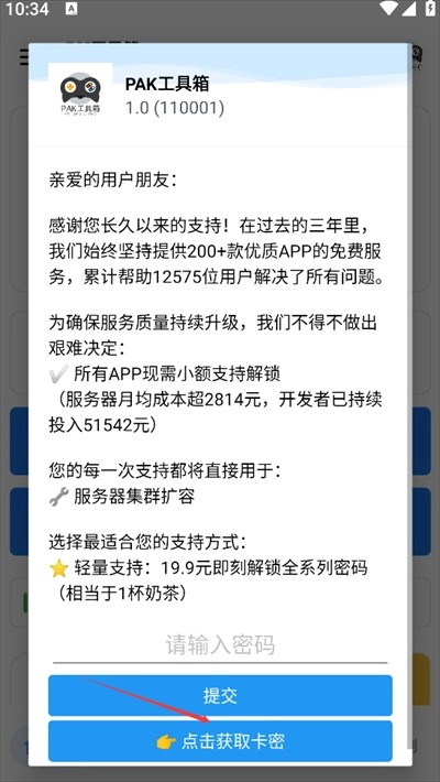 点击下方的获取卡密,通过跳转网页获取卡密。