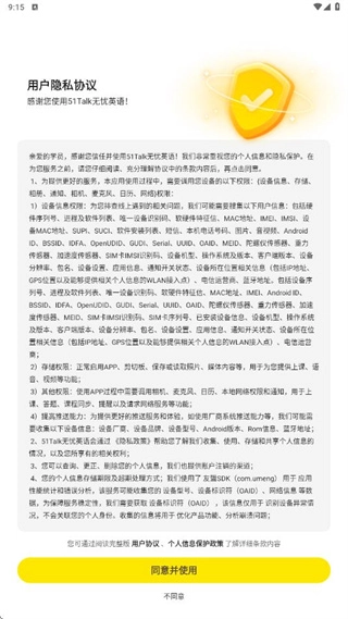 51Talk无忧英语是大生在线(深圳)文化传媒科技有限公司打造的线上英语学习平台。依托多年教学积累,它致力于为各阶段英语学习者创造高效便捷的学习环境。从零基础启蒙到高阶提升,平台覆盖了课程学习、同步练习、辅导答疑、阶段性测试等完整内容,形成了闭环学习体系,助力用户掌握地道英语表达、提升语言应用能力,最终达成流利沟通的目标。无论您是想提升职场英语能力、备战各类考试,还是单纯热爱英语学习,这款产品都能为您提供个性化的学习方案。