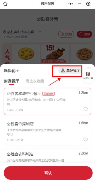 若要切换餐厅,只需点击界面上的“更多餐厅”选项,即可查看其他位置的餐厅信息。