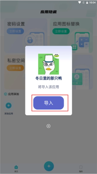 替换完需要隐藏的图标后,点击下方的应用添加功能,把游戏和应用添加进去,选好游戏后点击“导入”按钮。