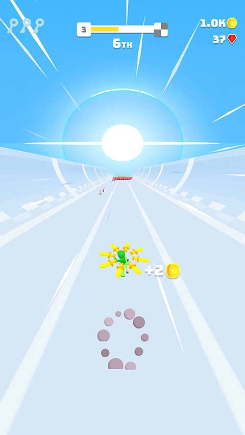 游戏里的金币通常会成排出现,我们可以提前滑到对应的跑道上。
