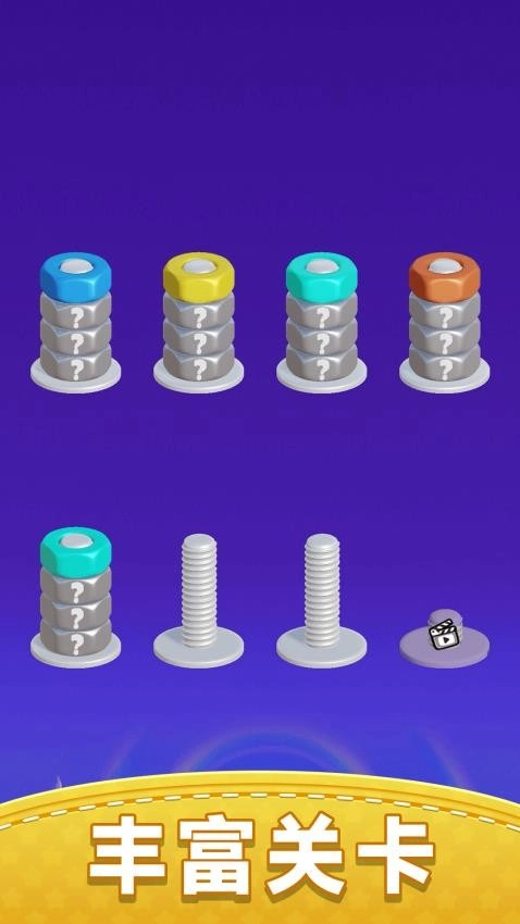 玩家只需轻点屏幕上的螺丝钉,依据规则匹配消除,消除数量越多,得分就越高。