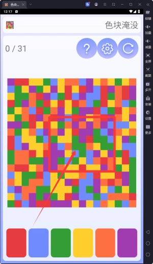 玩家要在规定步数里,通过点击消除同色的色块,有策略地达成填满颜色板的关卡要求。