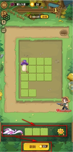 点击刷新按钮后,玩家能够获取更多植物,以此来充实自己的阵容。