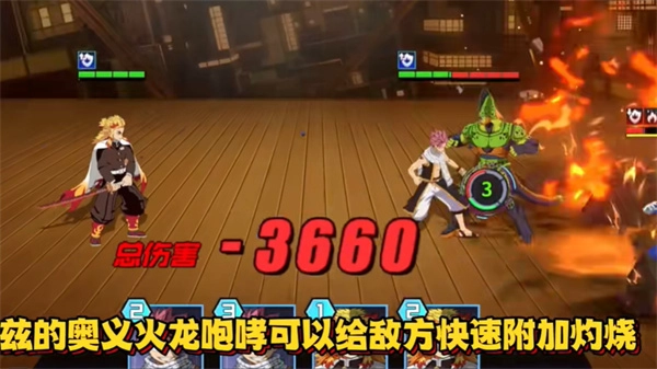 和纳兹组合使用时,借助他的奥义火龙咆哮能迅速让敌人附上灼烧效果,之后再由炎柱完成收割。