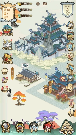 通过点击对应的建筑来分配弟子完成任务,完成工作可以获得银两和材料。