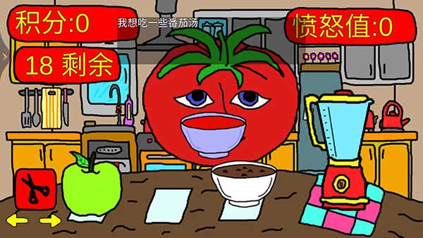 游戏的玩法机制很简单,玩家给番茄先生投喂各种不同的食物,他就会有不一样的反应,要是他进入暴走状态,记得一定要赶紧跑开!