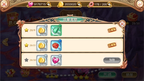5、挑战副本时,无论是普通难度还是精英难度,只要达成30/30的星星目标,都能获得对应的钻石奖励——普通难度满星可领50钻石,精英难度满星则能拿到100钻石。