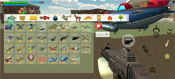 3、购买了进入地图,点击左上角的方块选项,就可以选择你购买的飞机等资源
