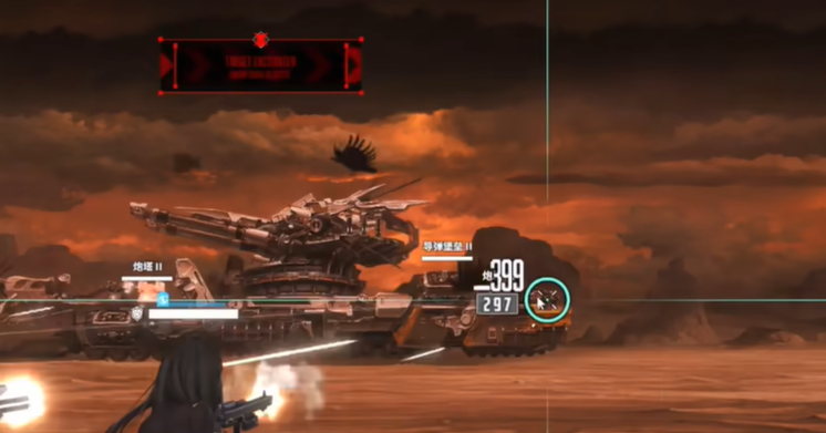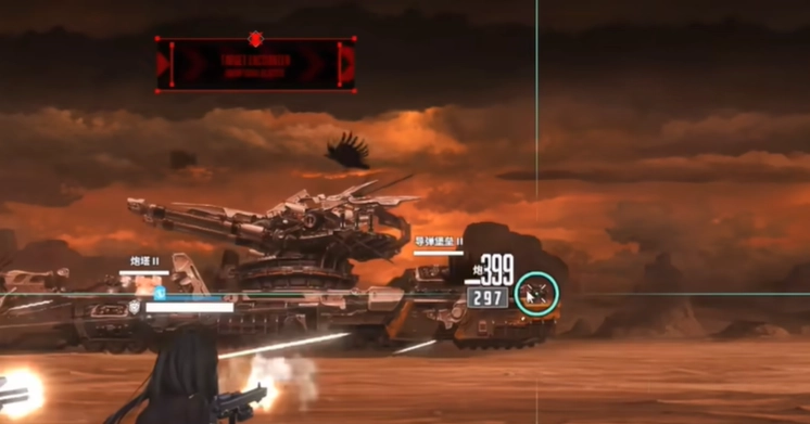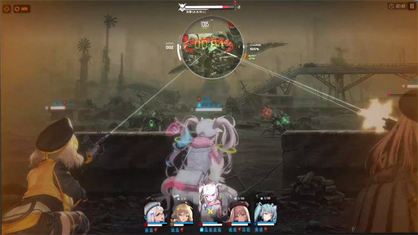 1、古铁:选择小红帽作为主C,她超高的爆发能在短时间内对BOSS造成大量伤害;诺伊斯利用蓄力技能吸引BOSS火力,为队伍争取输出时间;神罚在最终阶段进行爆裂扫射,对抗古铁的飞弹攻击。战斗开始,优先攻击右侧飞弹堡垒,若飞弹发射,可使用全屏aoe大招或操控角色打爆飞弹;清理完右侧后再清理左侧炮塔;BOSS车头车身分离后,操控角色对冲攻击飞弹并击打弱点(红圈位置) 。