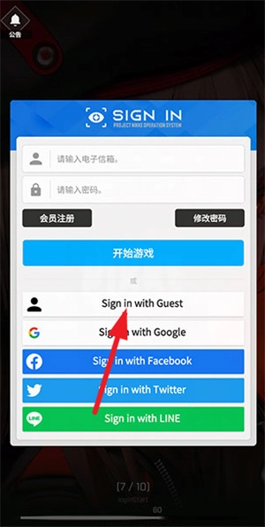 4、最简单的自然是游客模式,就在最上面,选择好以后,就能直接进入游戏。