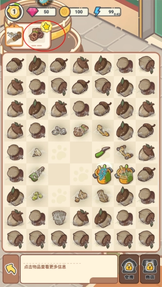 1、打开乐缤纷庄园的合成界面,把相同的元素合并到一起。