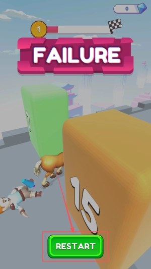 4、重新挑战:当屏幕上显示“FAILURE”提示时,点击“RESTART”按钮,即可马上开启新一轮的挑战。