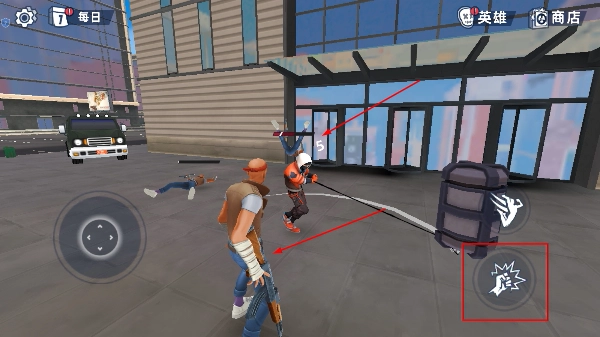 2、利用蛛丝穿梭城市时留意距离标识,借助手势图标调整移动方向躲避障碍。