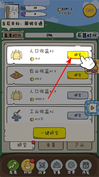 在科研界面中,点击类似“人口收益×2”这类研究按钮,能够提高对应领域的收益效率,这是优化资源产出的重要操作,完成研究后可明显增加人口所带来的收益。